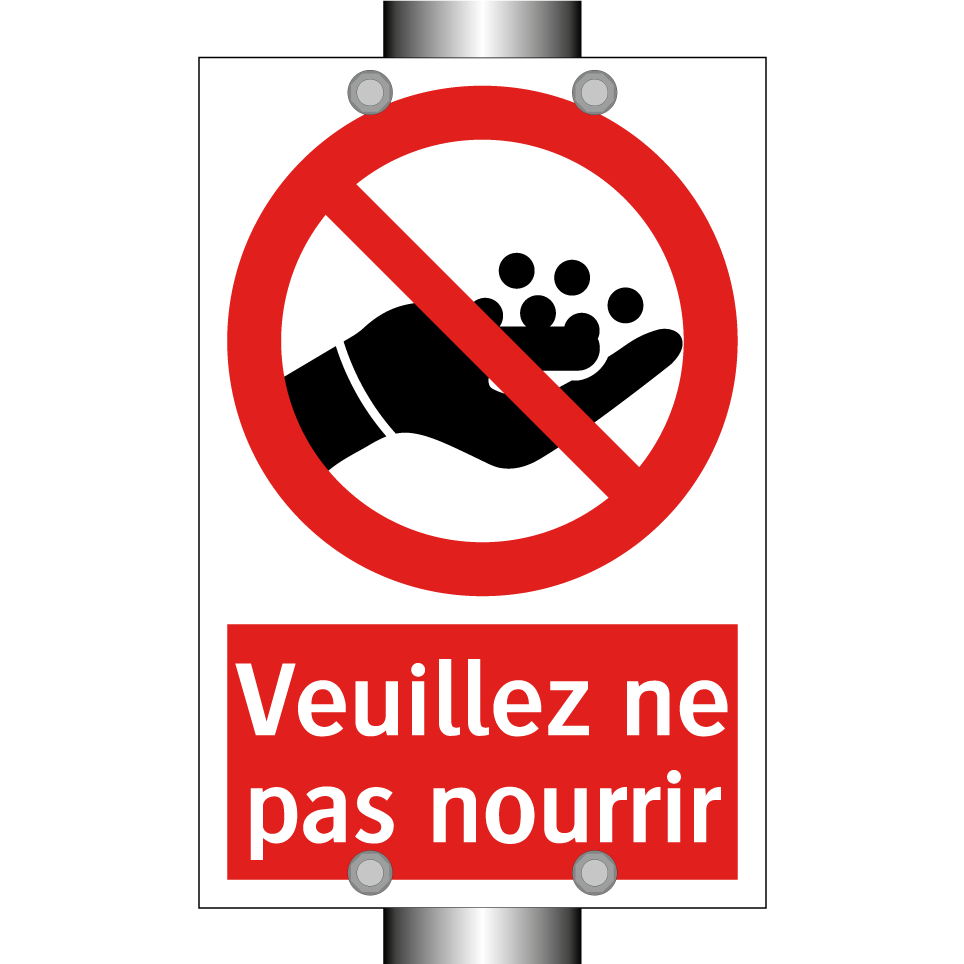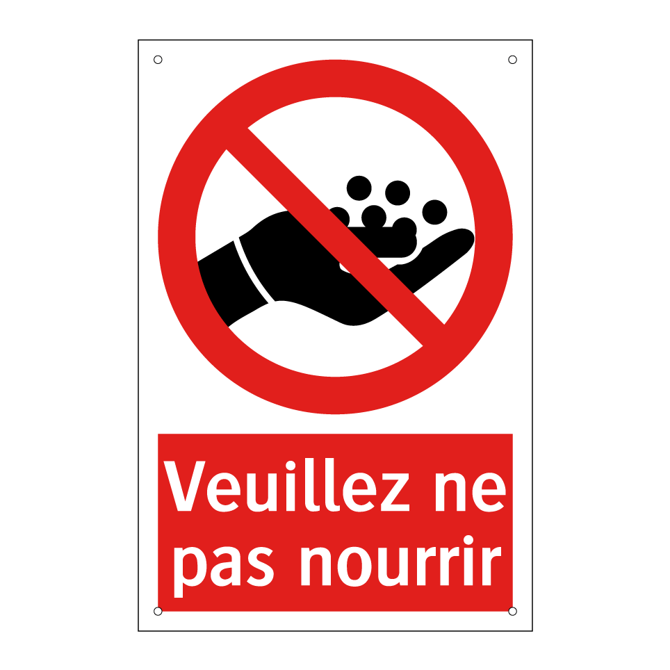 Panneau d'interdiction avec le texte : "Veuillez ne pas nourrir" et une symbolique claire.