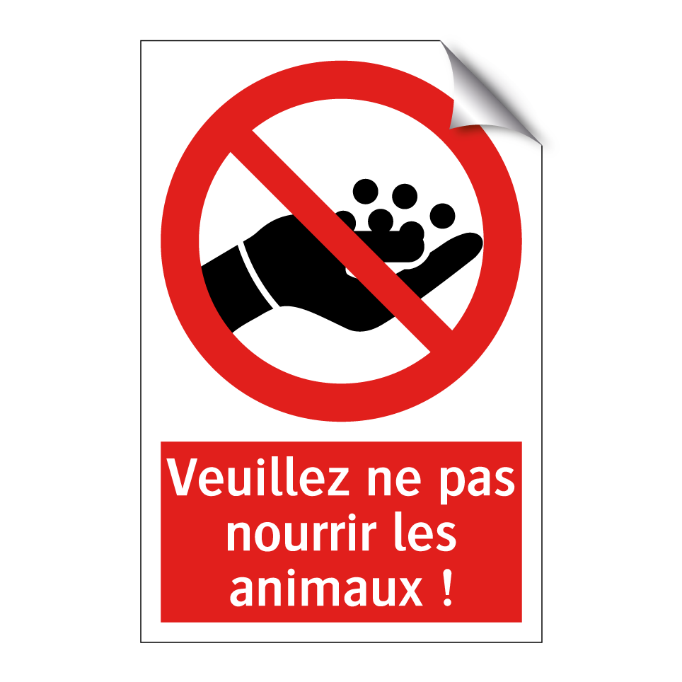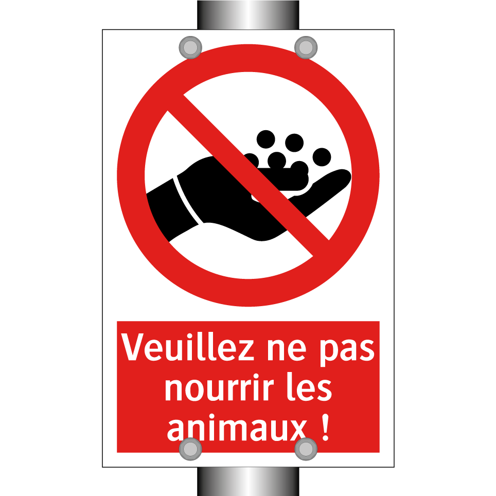 Panneau d'interdiction avec le texte : "Veuillez ne pas nourrir les animaux !" et une symbolique claire.