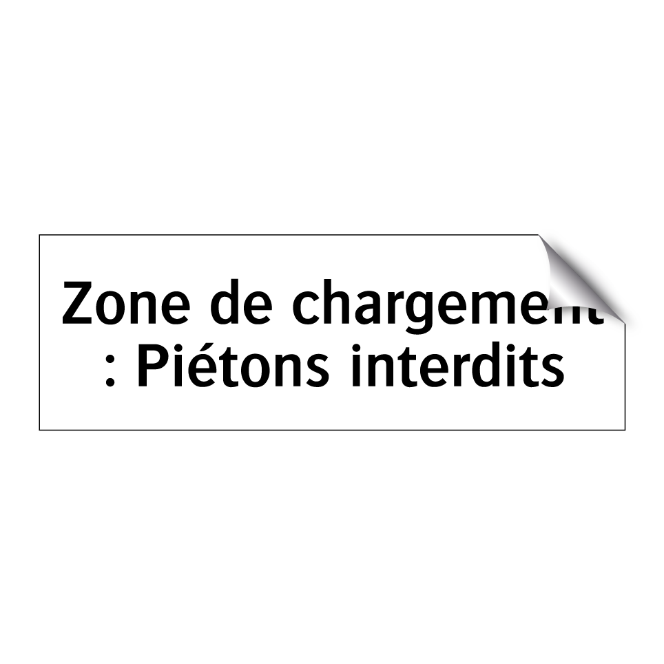 Panneau d'interdiction avec le texte : "Zone de chargement : Piétons interdits"