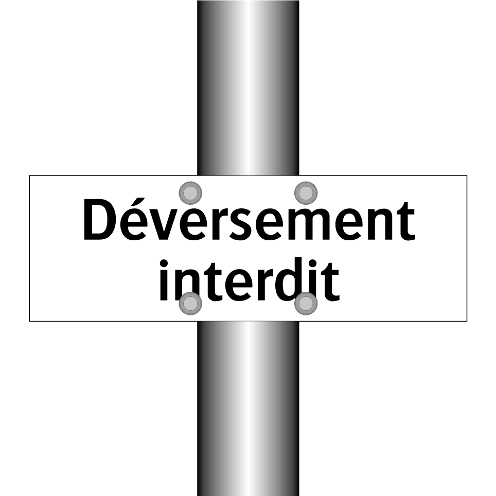 Panneau d'interdiction avec le texte : "Déversement interdit"