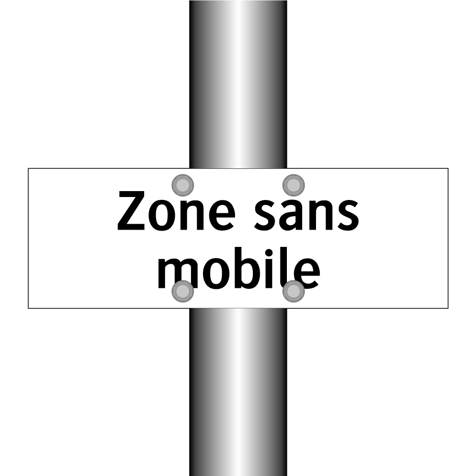 Panneau d'interdiction avec le texte : "Zone sans mobile"