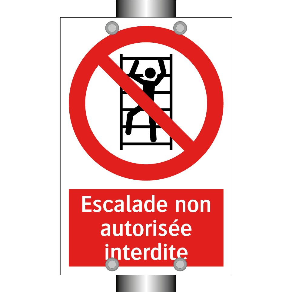 Panneau d'interdiction avec le texte : "Escalade non autorisée interdite" et une symbolique claire.