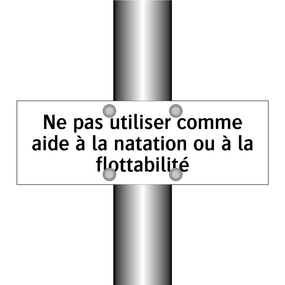Panneau d'interdiction avec le texte : "Ne pas utiliser comme aide à la natation ou à la flottabilité"