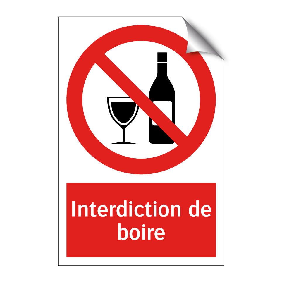 Panneau d'interdiction avec le texte : "Interdiction de boire" et une symbolique claire.