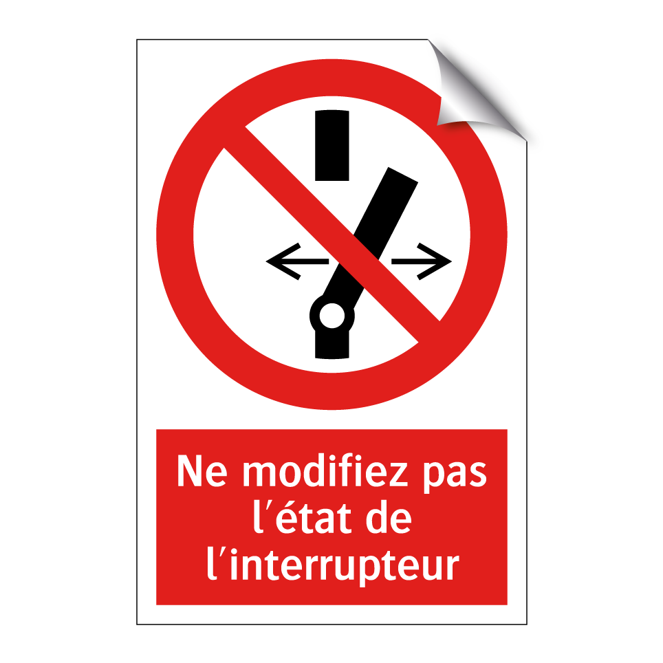 Panneau d'interdiction avec le texte : "Ne modifiez pas l'état de l'interrupteur" et une symbolique claire.