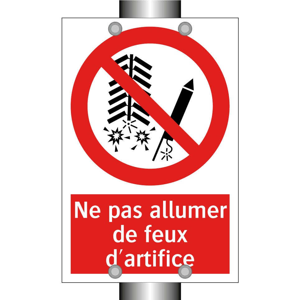 Panneau d'interdiction avec le texte : "Ne pas allumer de feux d'artifice" et une symbolique claire.