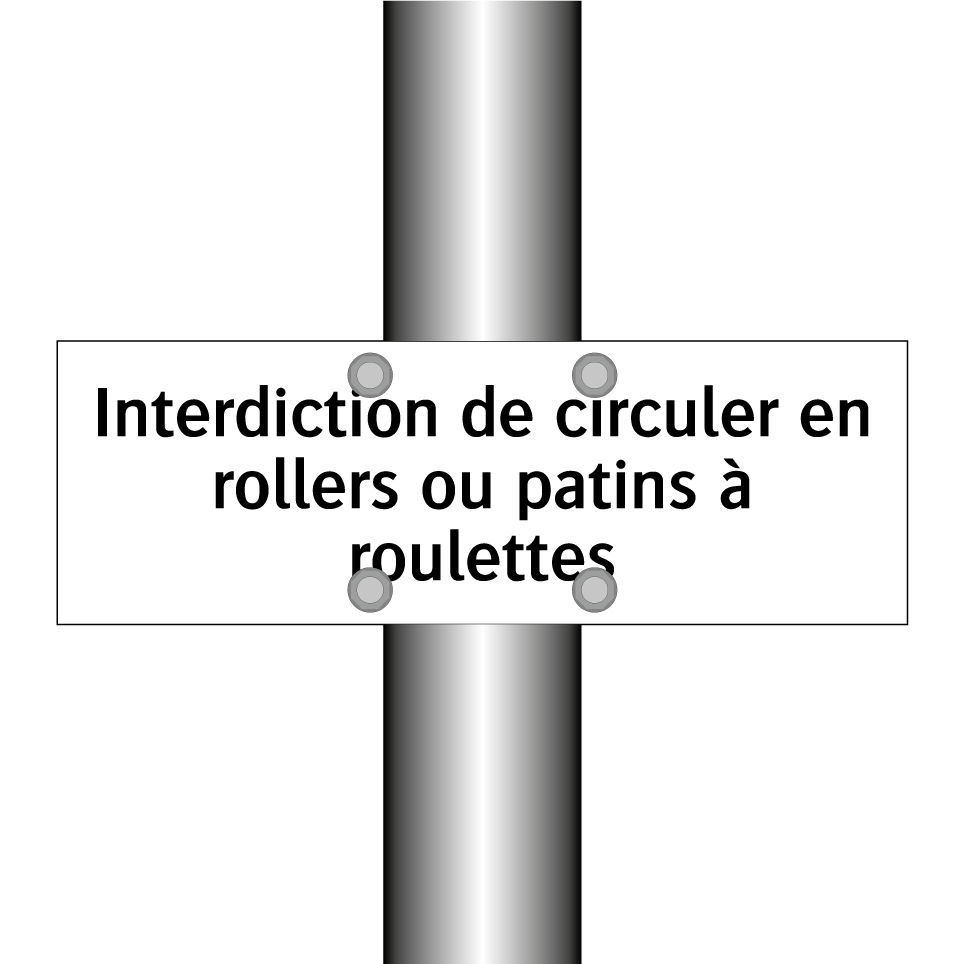 Panneau d'interdiction avec le texte : "Interdiction de circuler en rollers ou patins à roulettes"