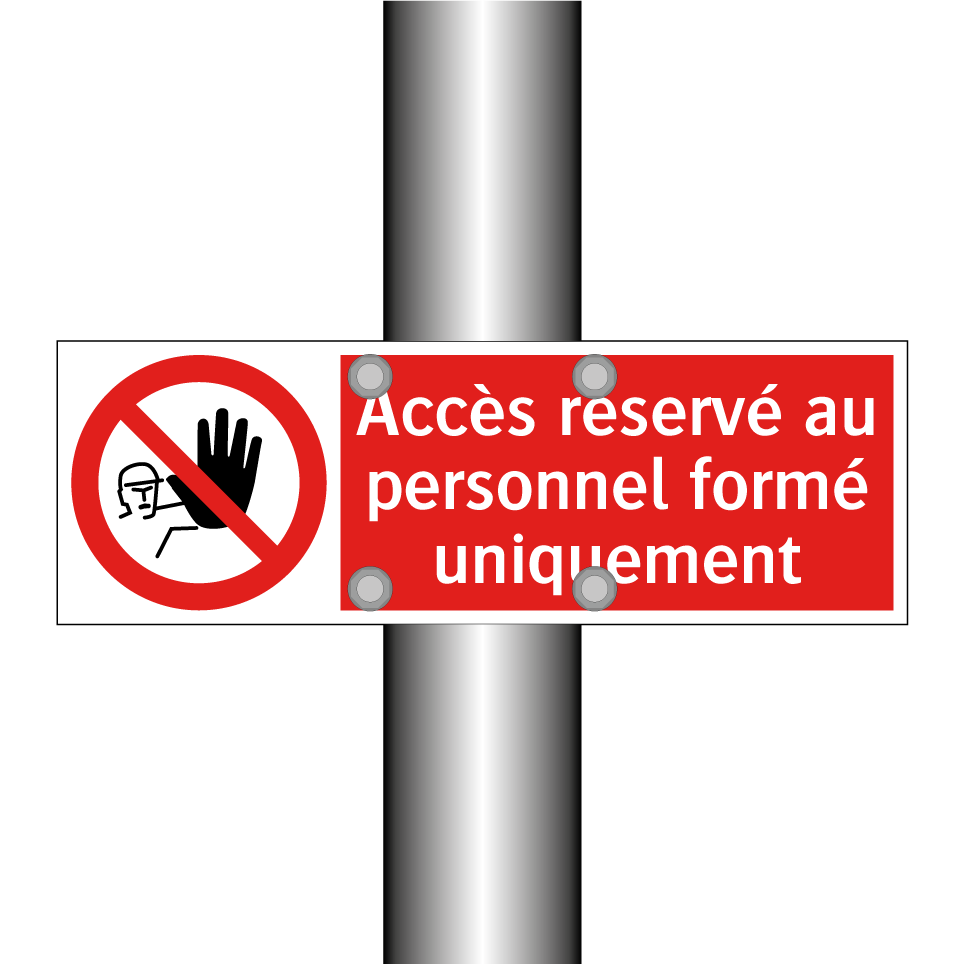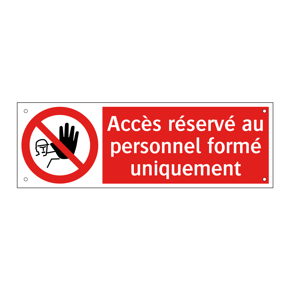 Panneau d'interdiction avec le texte : "Accès réservé au personnel formé uniquement" et une symbolique claire.