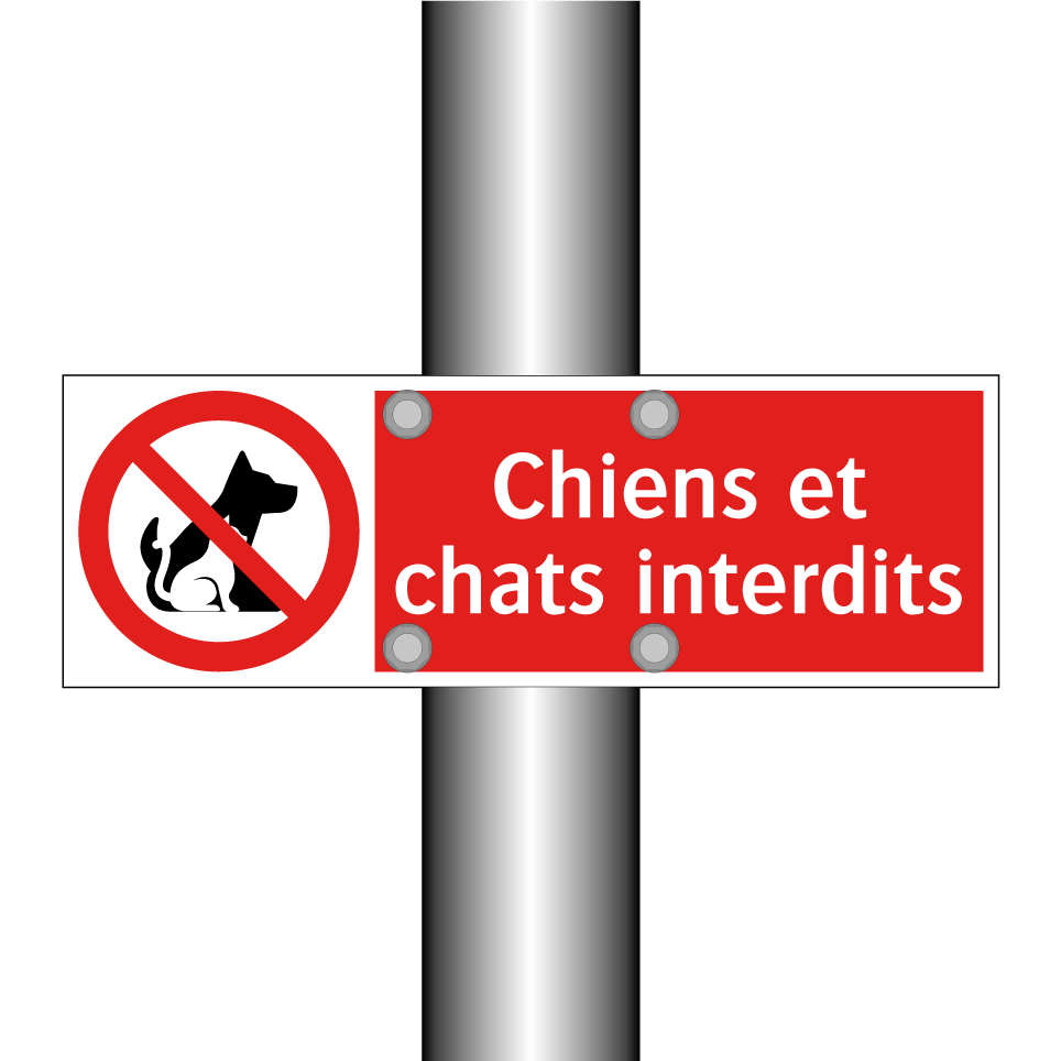 Panneau d'interdiction avec le texte : "Chiens et chats interdits" et une symbolique claire.