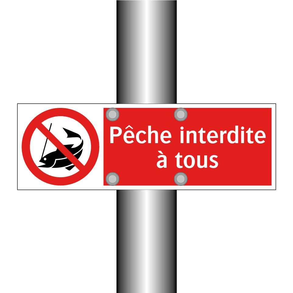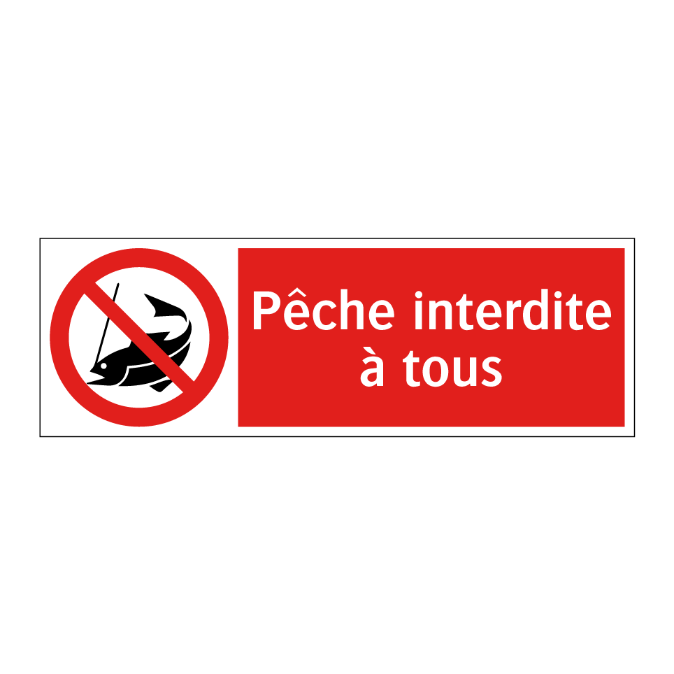 Panneau d'interdiction avec le texte : "Pêche interdite à tous" et une symbolique claire.