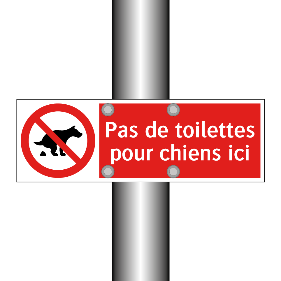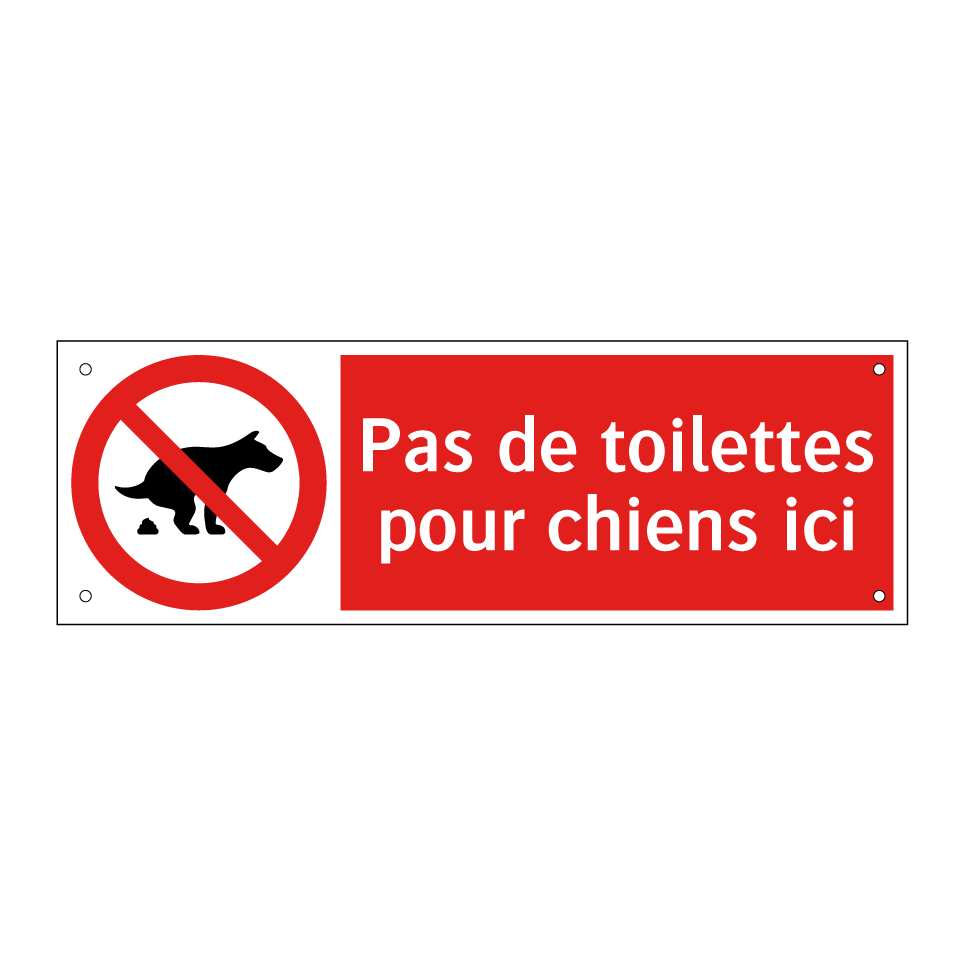 Panneau d'interdiction avec le texte : "Pas de toilettes pour chiens ici" et une symbolique claire.