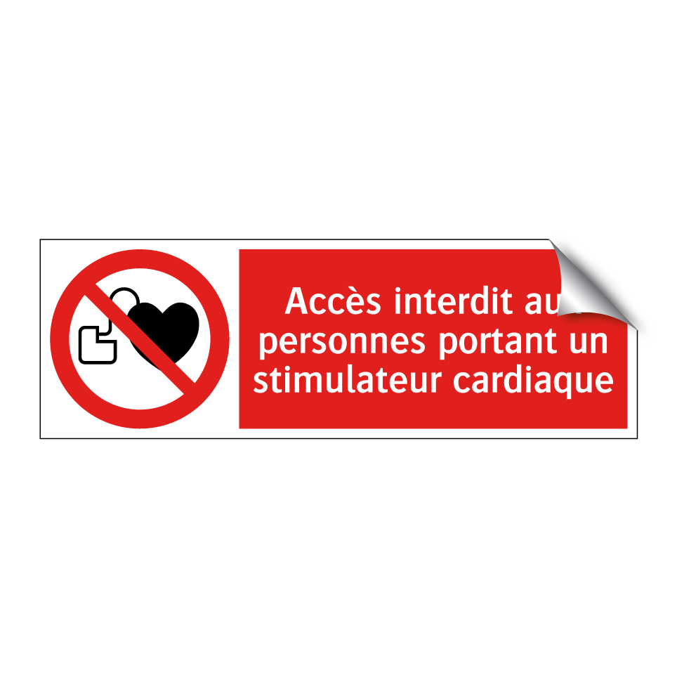 Panneau d'interdiction avec le texte : "Accès interdit aux personnes portant un stimulateur cardiaque" et une symbolique claire.