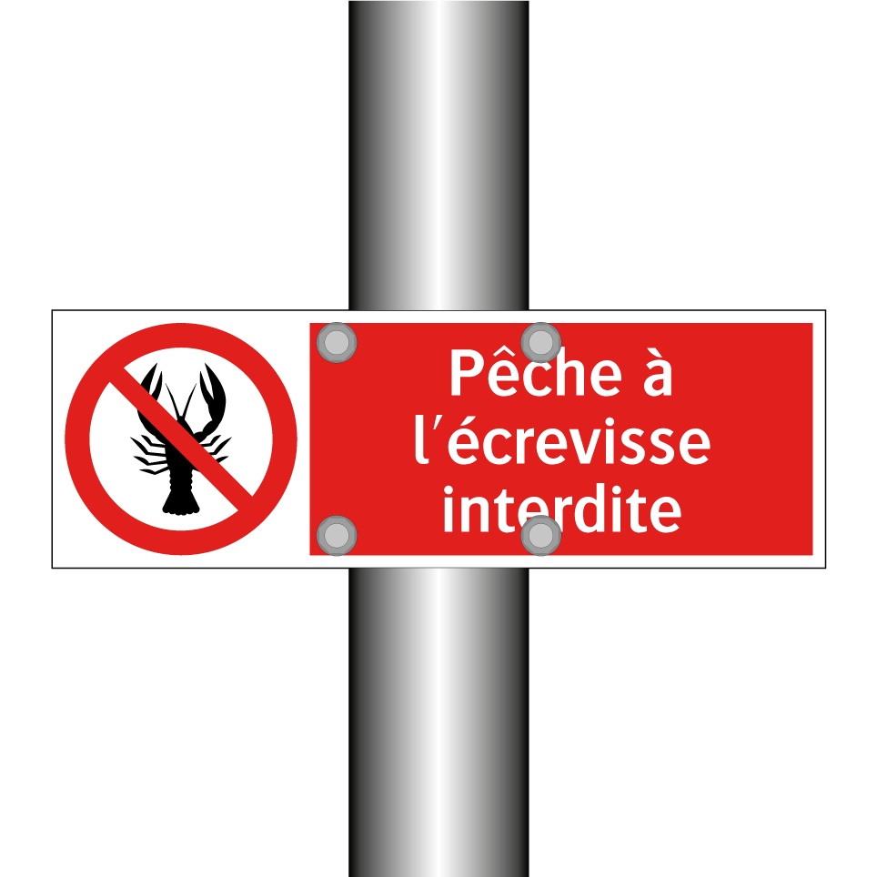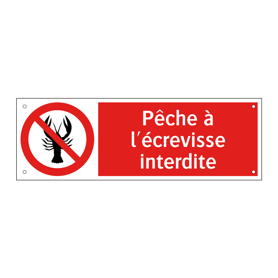 Panneau d'interdiction avec le texte : "Pêche à l'écrevisse interdite" et une symbolique claire.