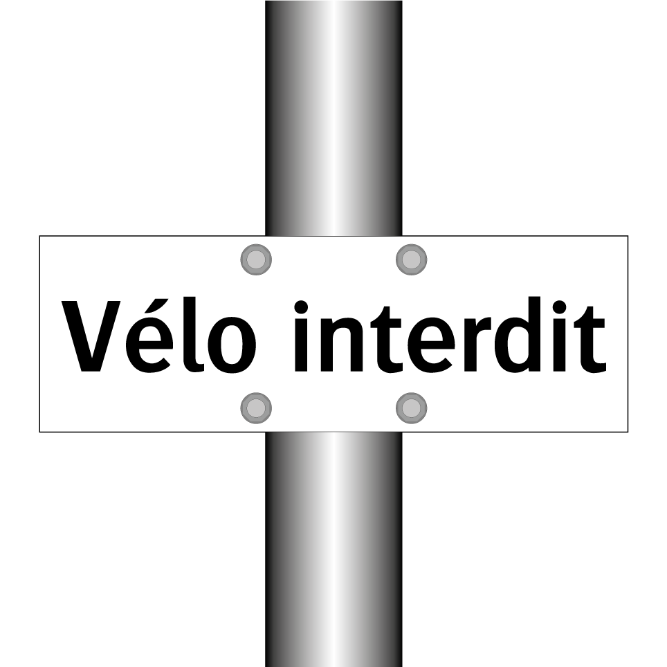 Panneau d'interdiction avec le texte : "Vélo interdit"