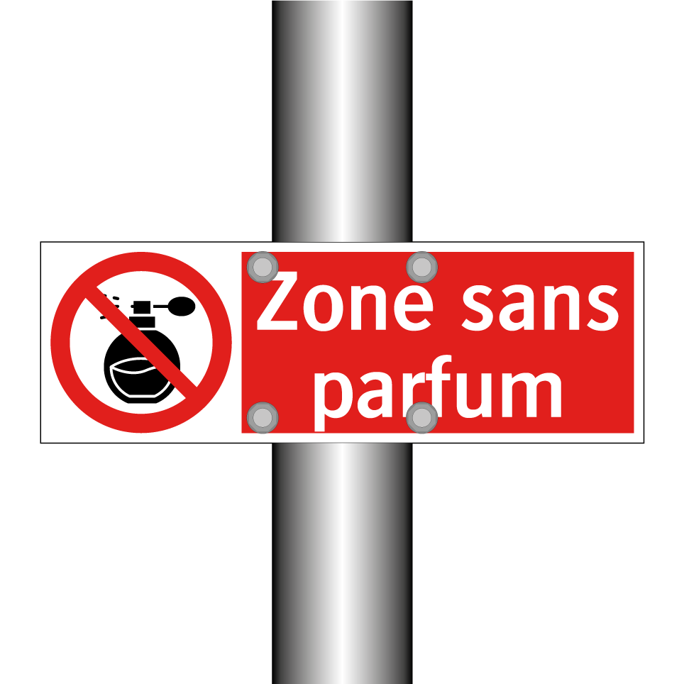 Panneau d'interdiction avec le texte : "Zone sans parfum" et une symbolique claire.