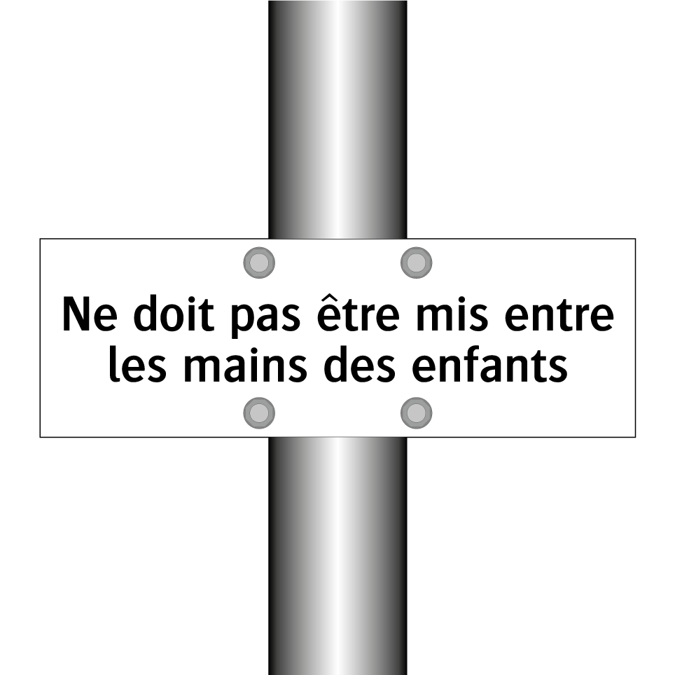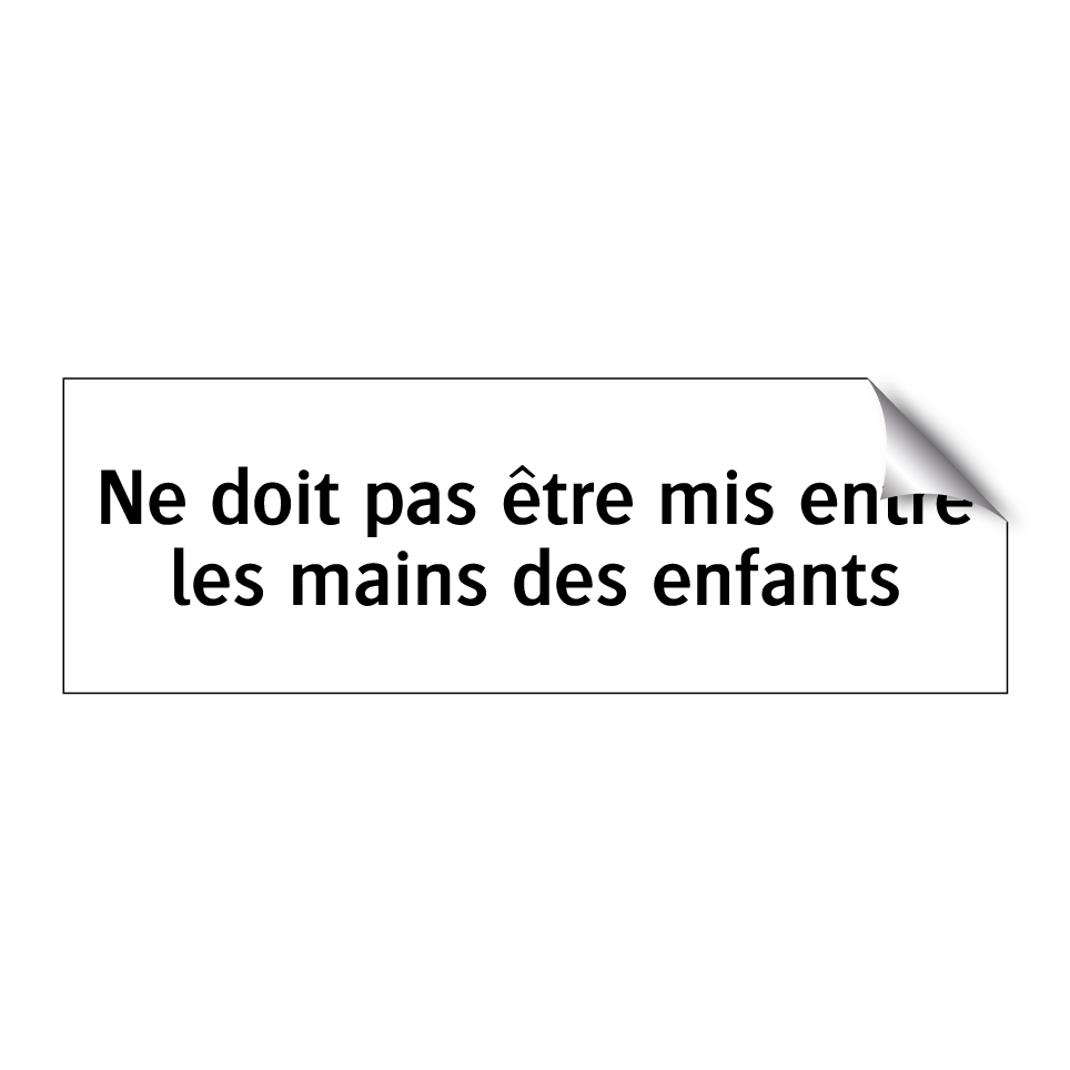 Panneau d'interdiction avec le texte : "Ne doit pas être mis entre les mains des enfants"