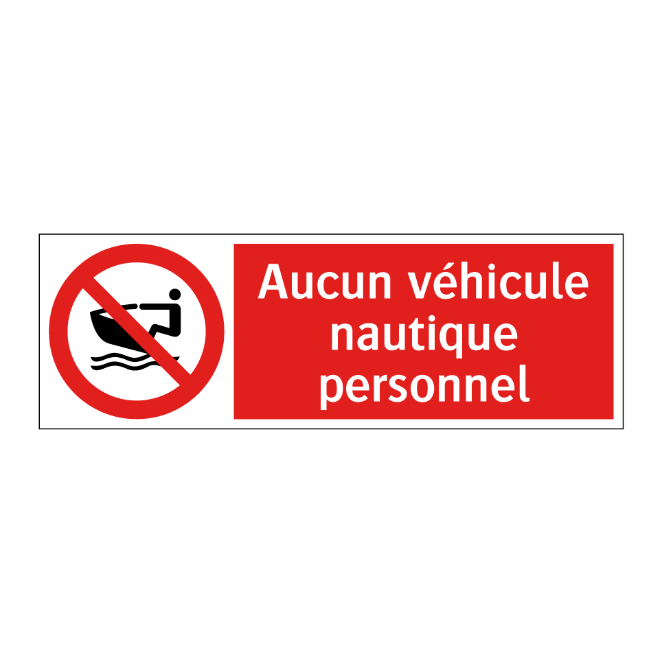 Panneau d'interdiction avec le texte : "Aucun véhicule nautique personnel" et une symbolique claire.