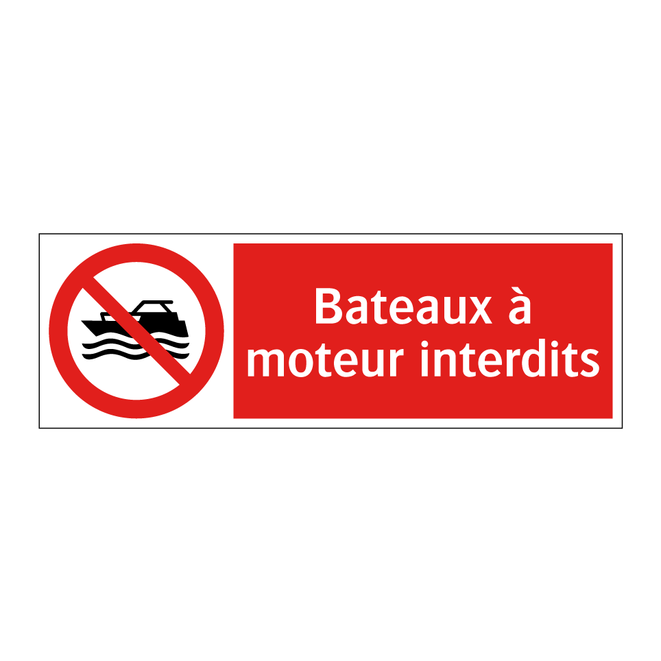 Panneau d'interdiction avec le texte : "Bateaux à moteur interdits" et une symbolique claire.