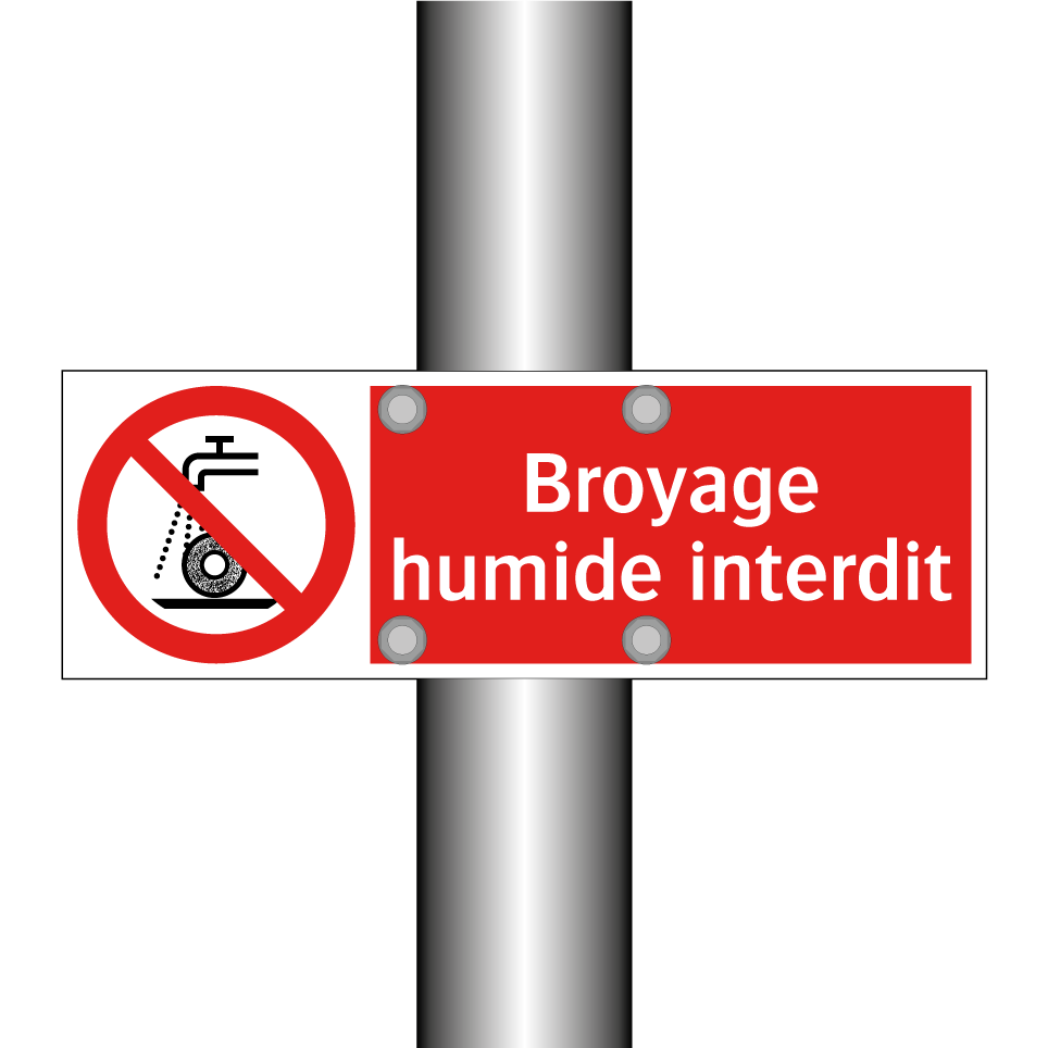 Panneau d'interdiction avec le texte : "Broyage humide interdit" et une symbolique claire.