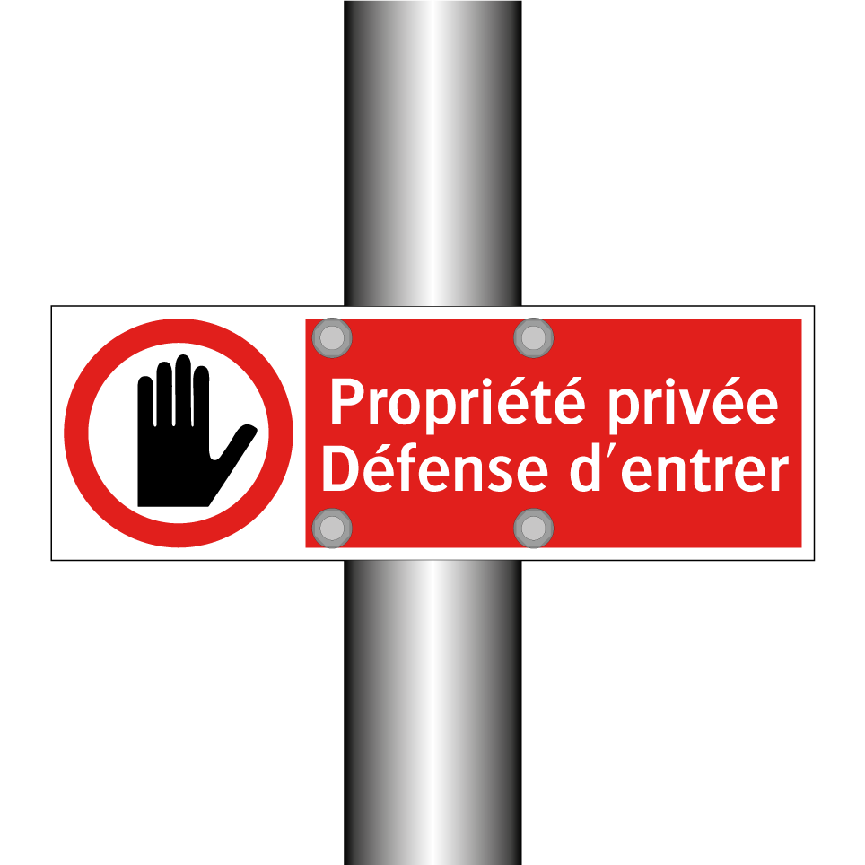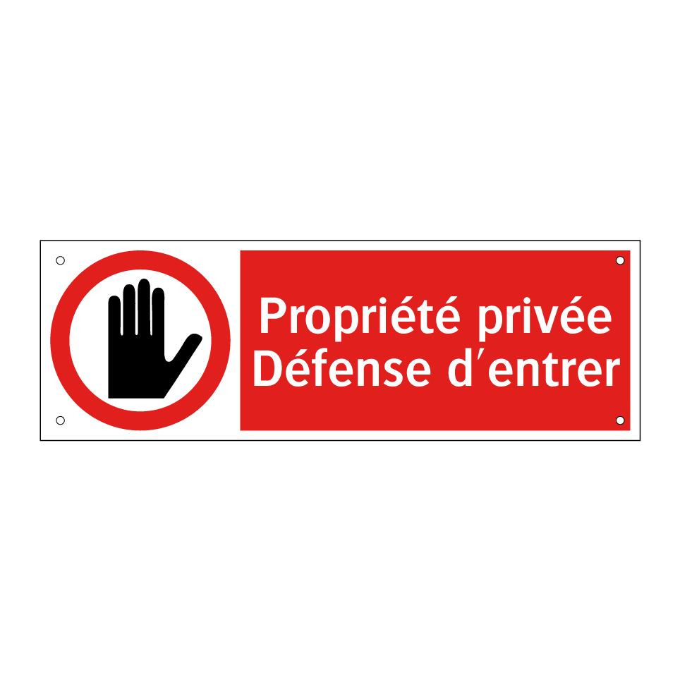 Panneau d'interdiction avec le texte : "Propriété privée Défense d'entrer" et une symbolique claire.