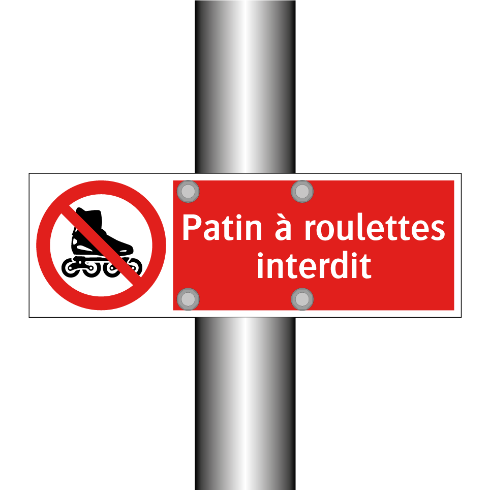 Panneau d'interdiction avec le texte : "Patin à roulettes interdit" et une symbolique claire.