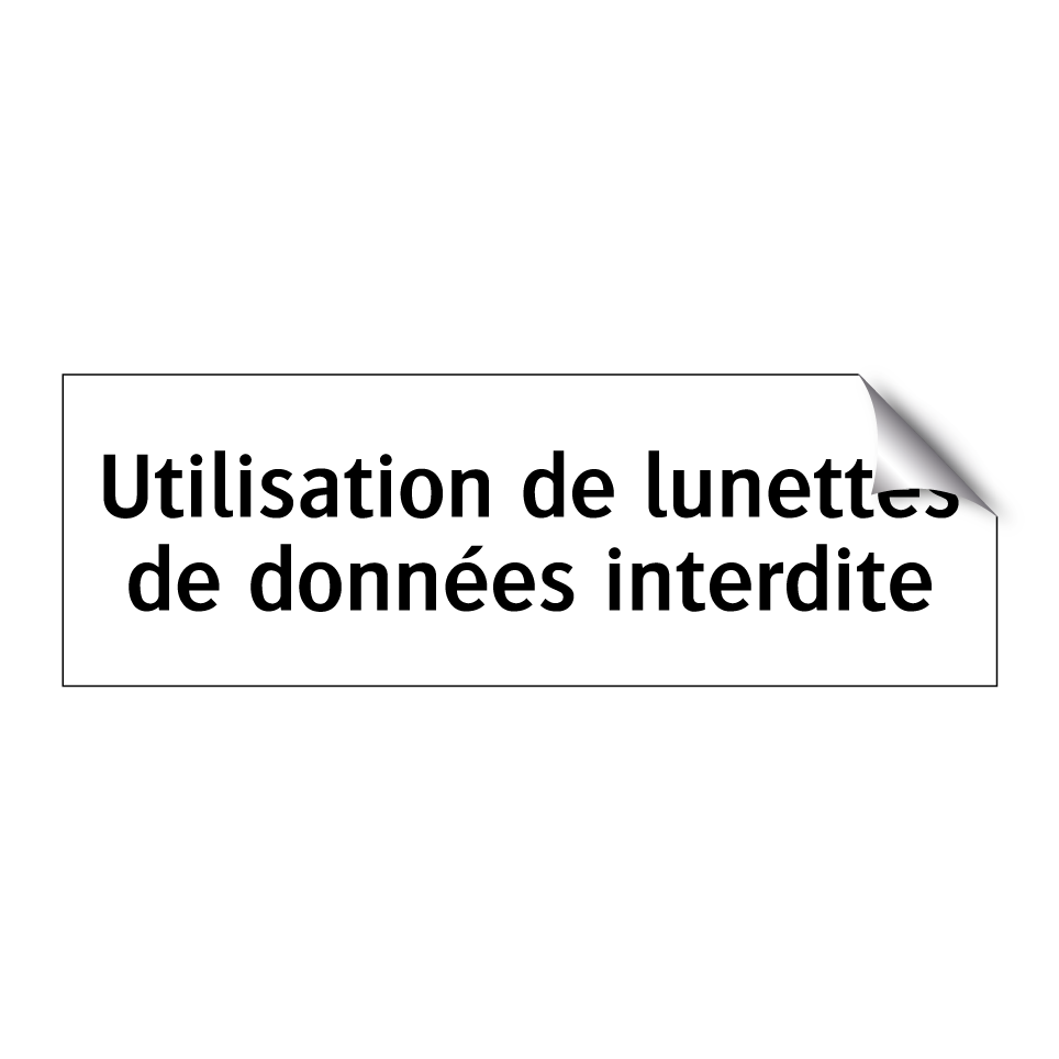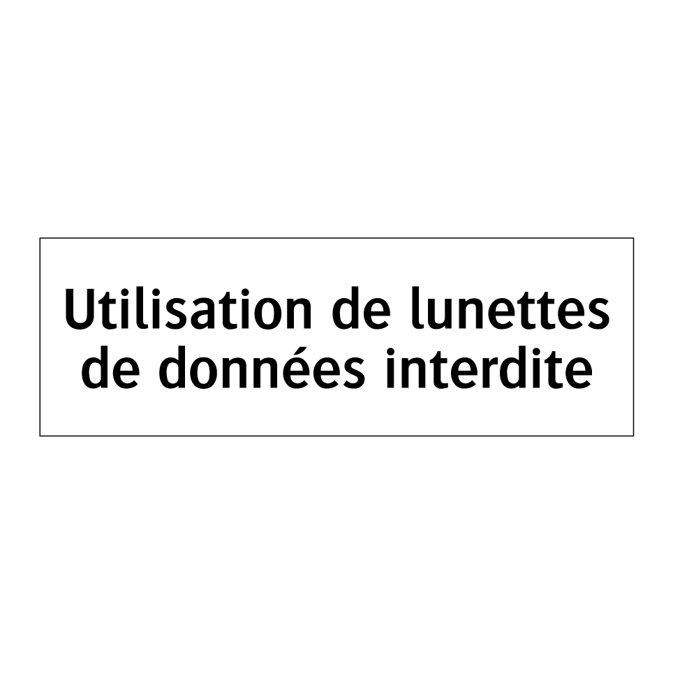 Panneau d'interdiction avec le texte : "Utilisation de lunettes de données interdite"