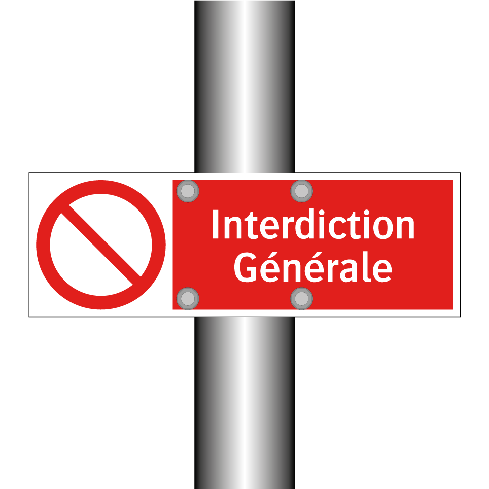 Panneau d'interdiction avec le texte : "Interdiction Générale" et une symbolique claire.