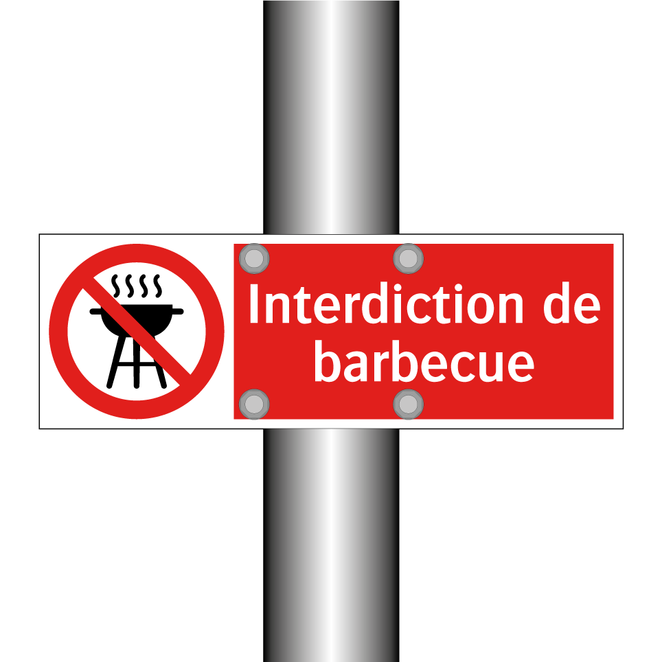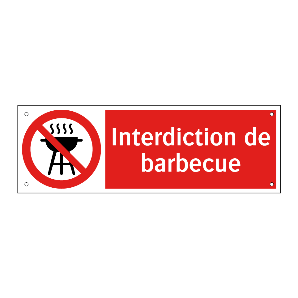 Panneau d'interdiction avec le texte : "Interdiction de barbecue" et une symbolique claire.