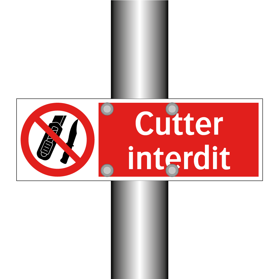 Panneau d'interdiction avec le texte : "Cutter interdit" et une symbolique claire.