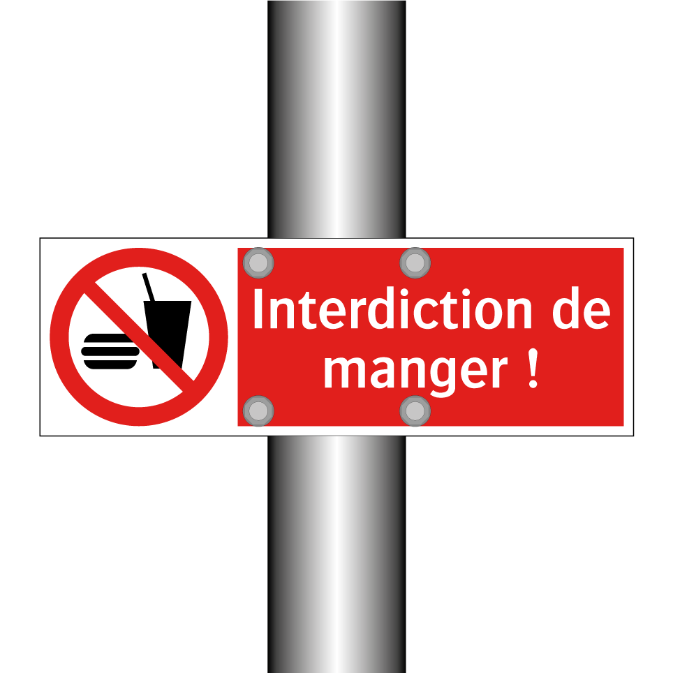 Panneau d'interdiction avec le texte : "Interdiction de manger !" et une symbolique claire.
