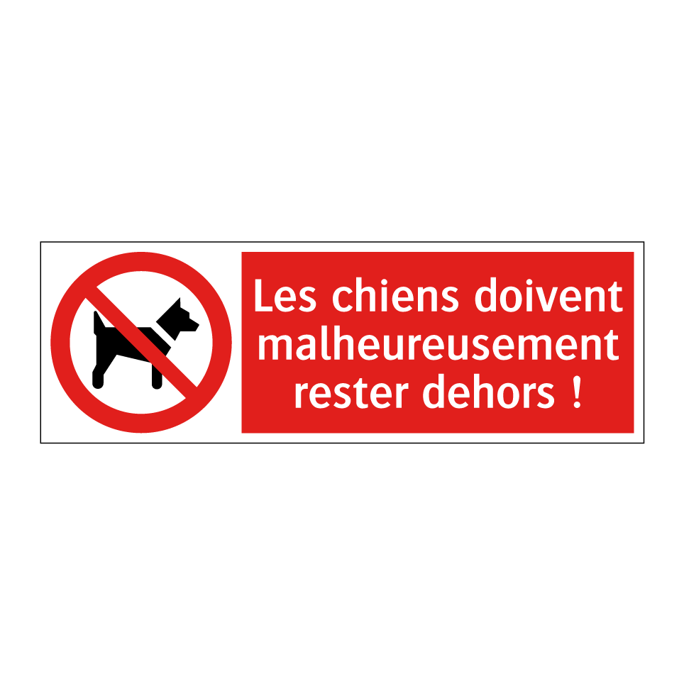 Panneau d'interdiction avec le texte : "Les chiens doivent malheureusement rester dehors !" et une symbolique claire.