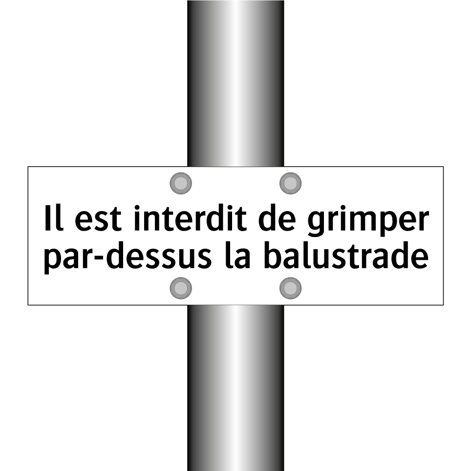 Panneau d'interdiction avec le texte : "Il est interdit de grimper par-dessus la balustrade"