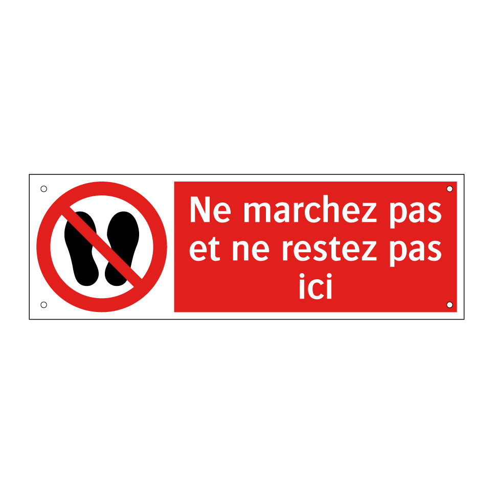 Panneau d'interdiction avec le texte : "Ne marchez pas et ne restez pas ici" et une symbolique claire.