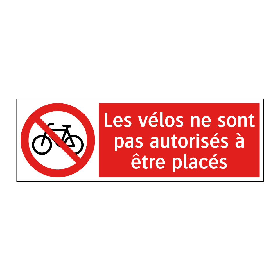 Panneau d'interdiction avec le texte : "Les vélos ne sont pas autorisés à être placés" et une symbolique claire.