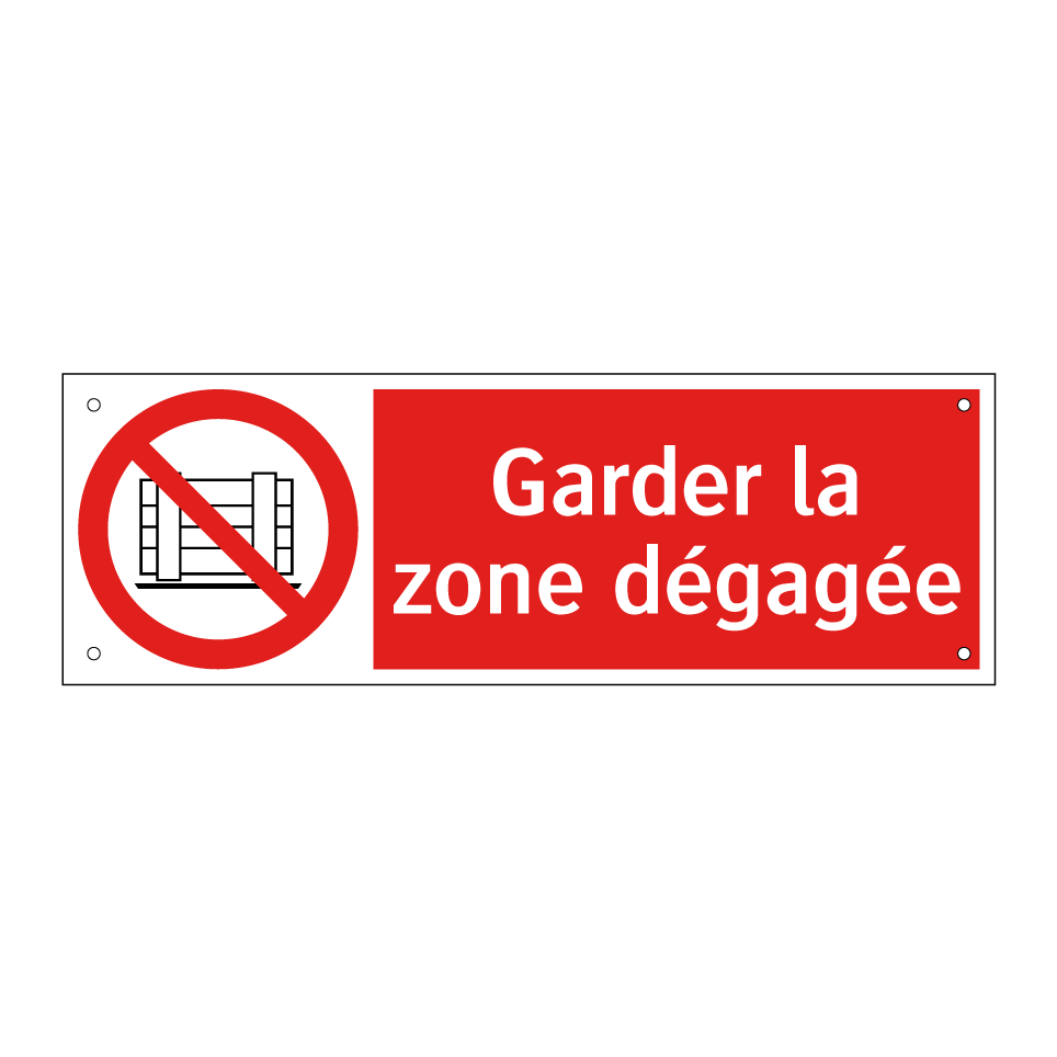 Panneau d'interdiction avec le texte : "Garder la zone dégagée" et une symbolique claire.
