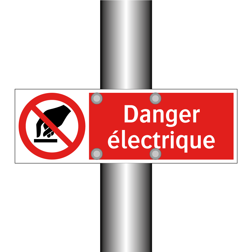 Panneau d'interdiction avec le texte : "Danger électrique" et une symbolique claire.