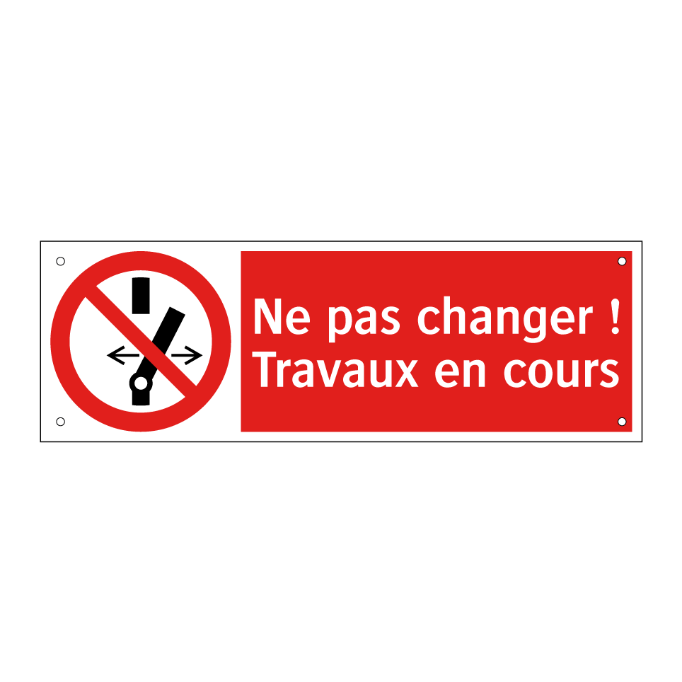 Panneau d'interdiction avec le texte : "Ne pas changer ! Travaux en cours" et une symbolique claire.
