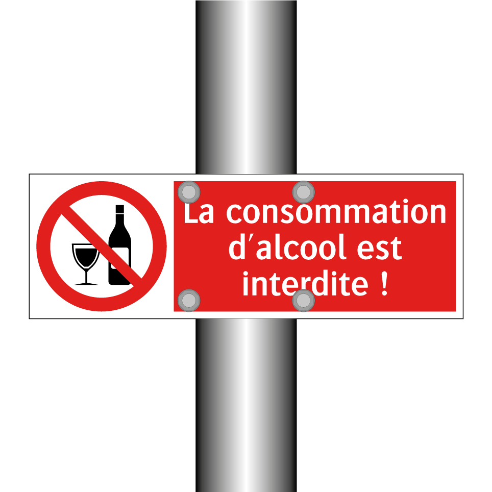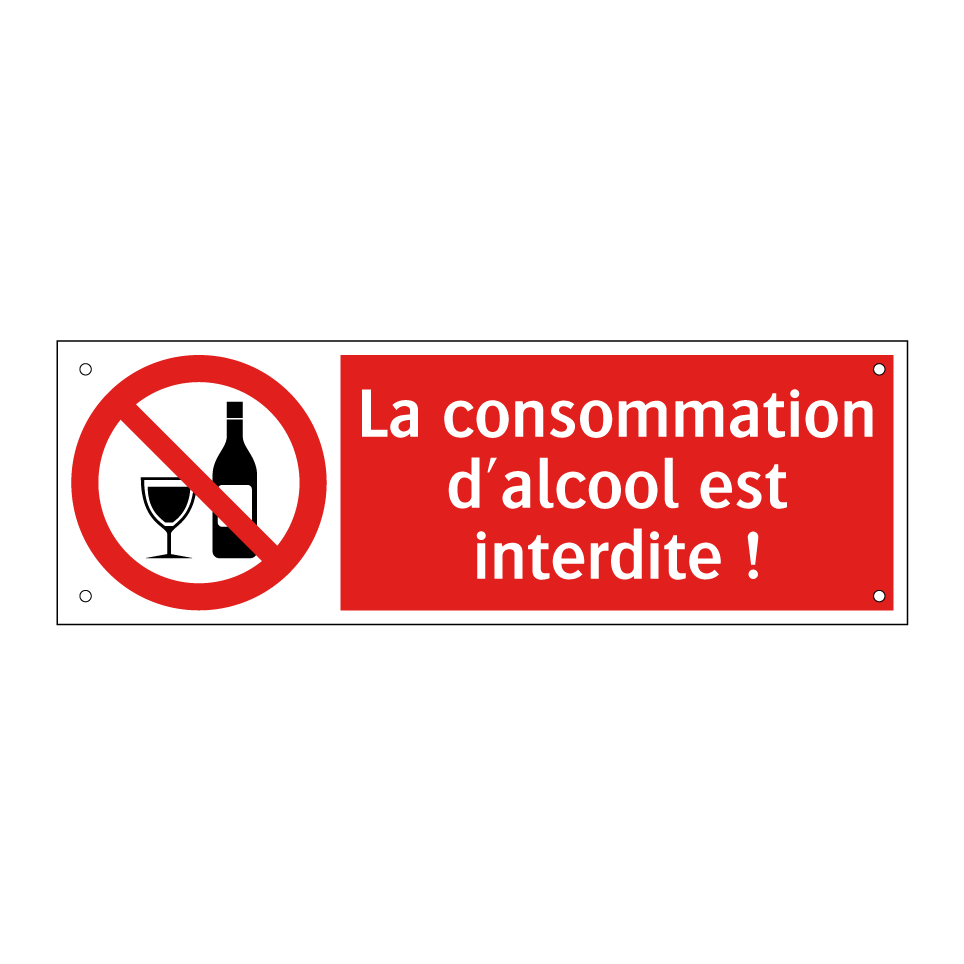 Panneau d'interdiction avec le texte : "La consommation d'alcool est interdite !" et une symbolique claire.