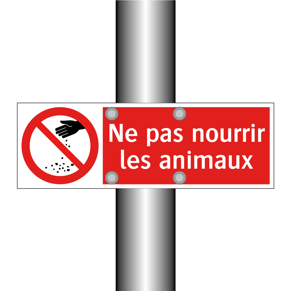 Panneau d'interdiction avec le texte : "Ne pas nourrir les animaux" et une symbolique claire.
