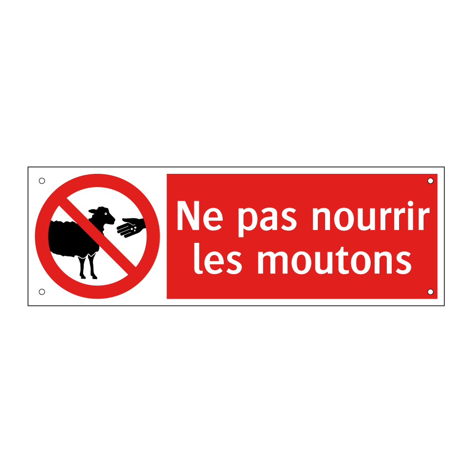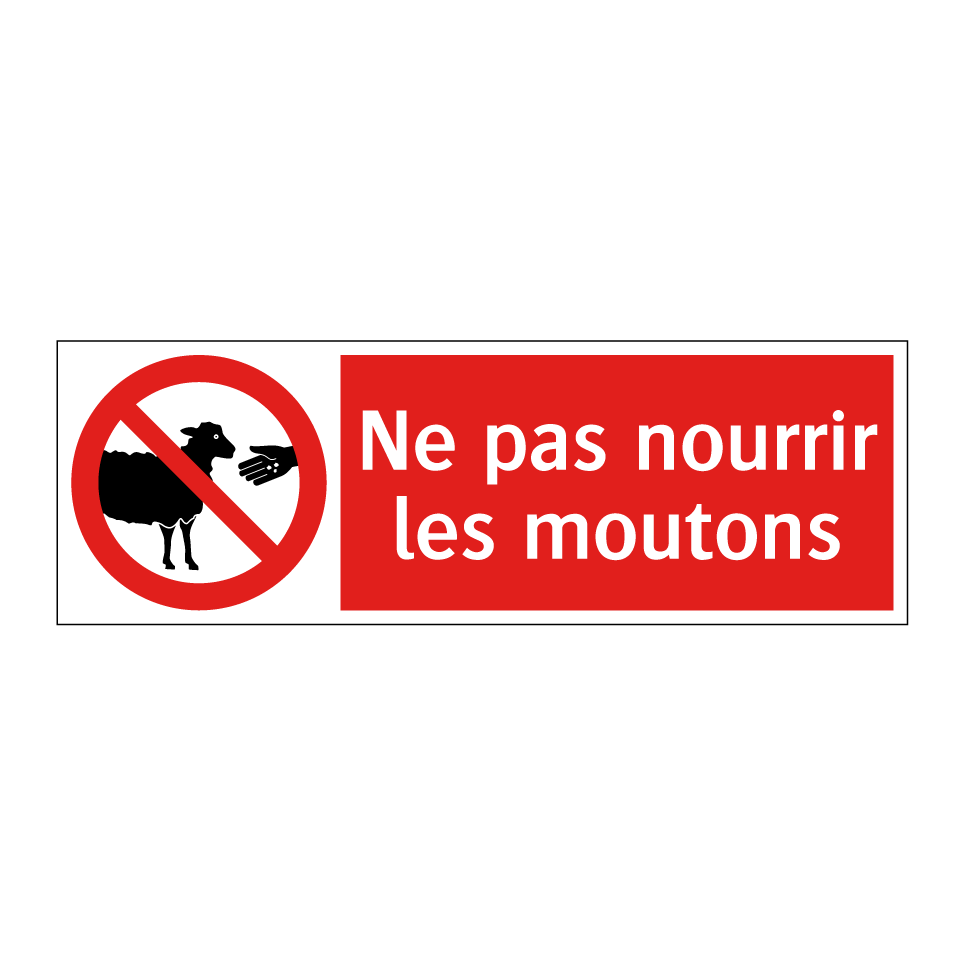 Panneau d'interdiction avec le texte : "Ne pas nourrir les moutons" et une symbolique claire.