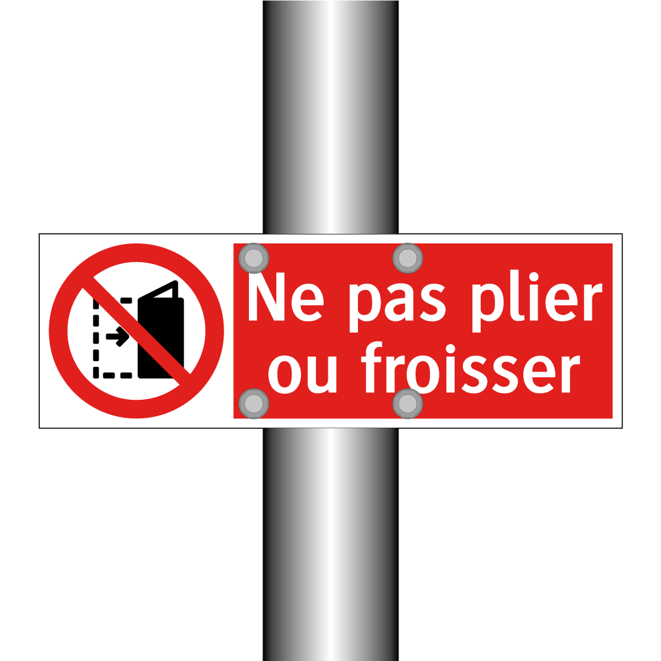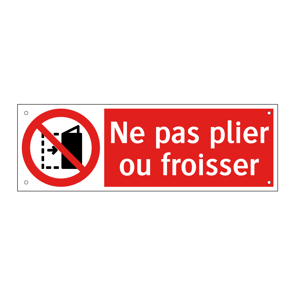 Panneau d'interdiction avec le texte : "Ne pas plier ou froisser" et une symbolique claire.