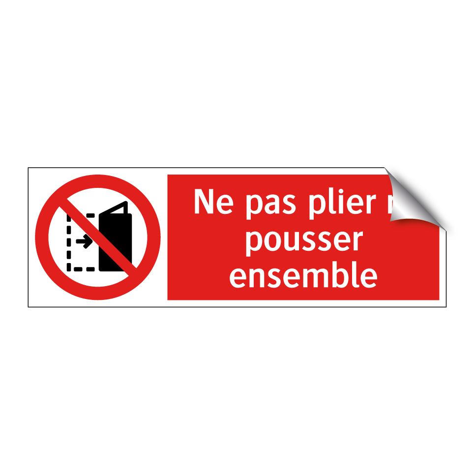 Panneau d'interdiction avec le texte : "Ne pas plier ni pousser ensemble" et une symbolique claire.