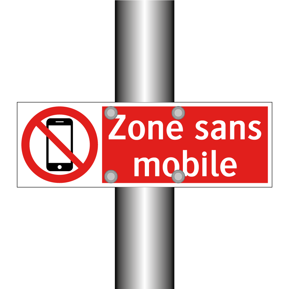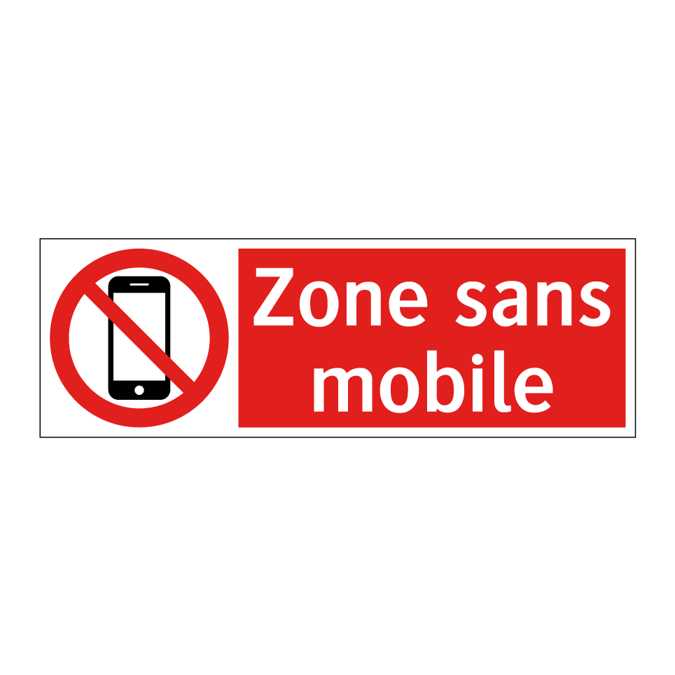 Panneau d'interdiction avec le texte : "Zone sans mobile" et une symbolique claire.