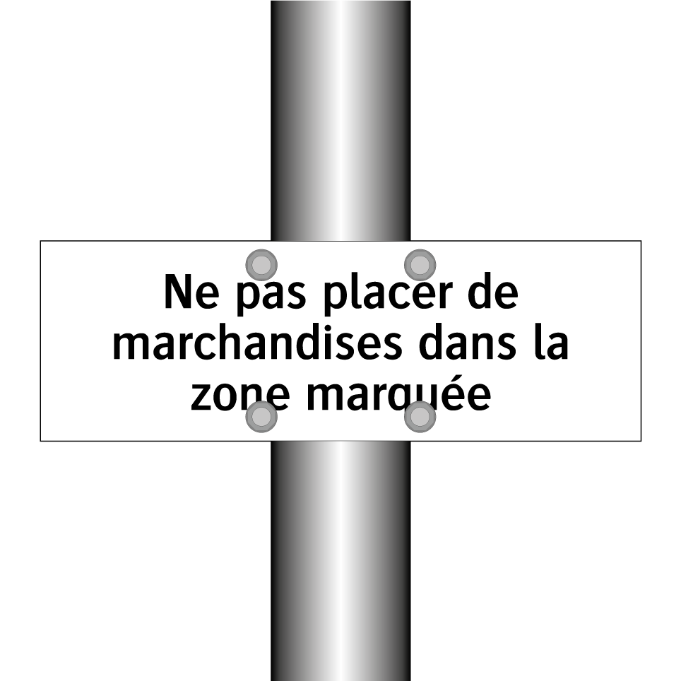 Panneau d'interdiction avec le texte : "Ne pas placer de marchandises dans la zone marquée"