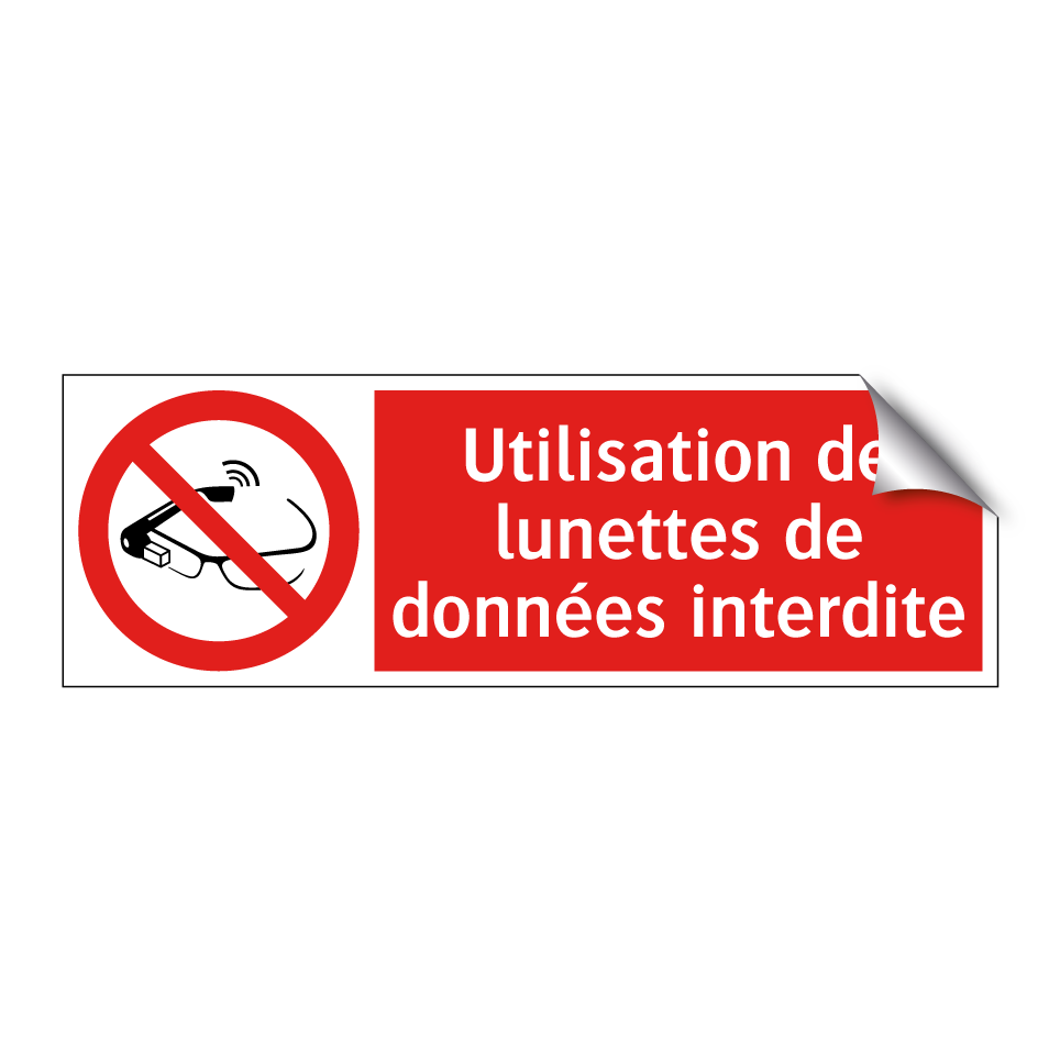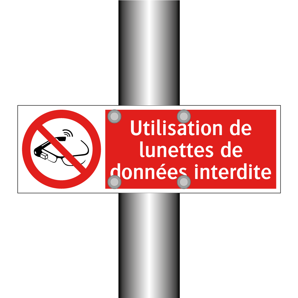 Panneau d'interdiction avec le texte : "Utilisation de lunettes de données interdite" et une symbolique claire.