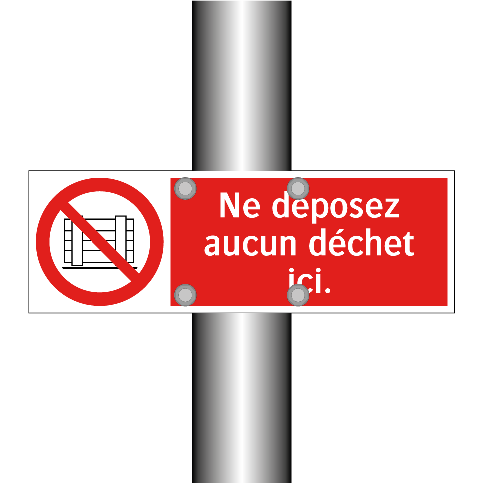 Panneau d'interdiction avec le texte : "Ne déposez aucun déchet ici." et une symbolique claire.