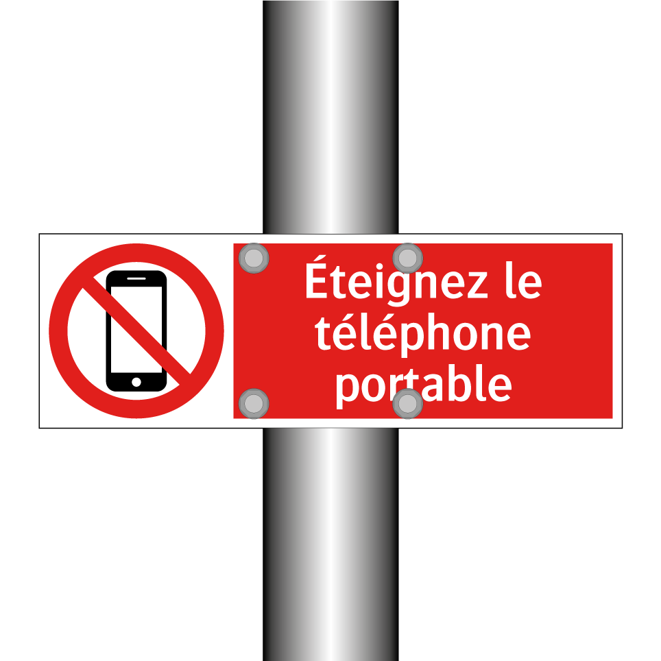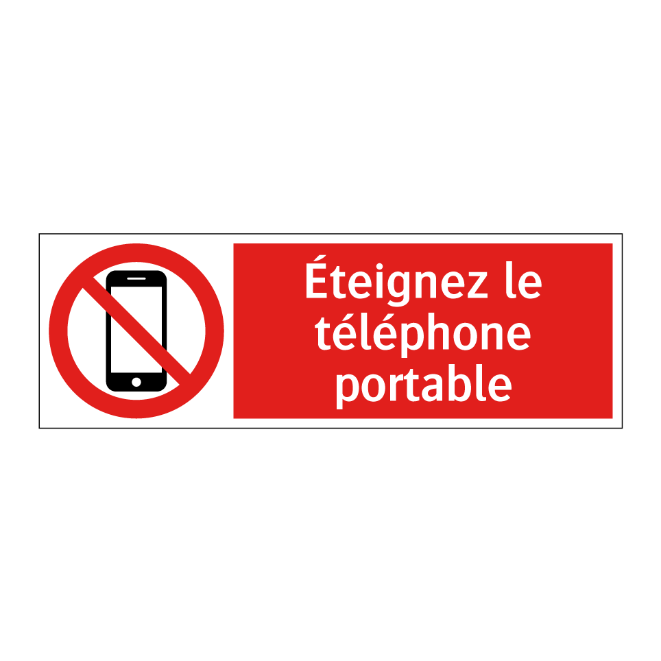 Panneau d'interdiction avec le texte : "Éteignez le téléphone portable" et une symbolique claire.