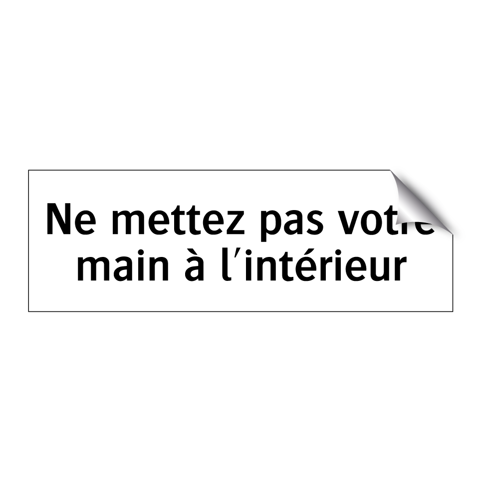 Panneau d'interdiction avec le texte : "Ne mettez pas votre main à l'intérieur"