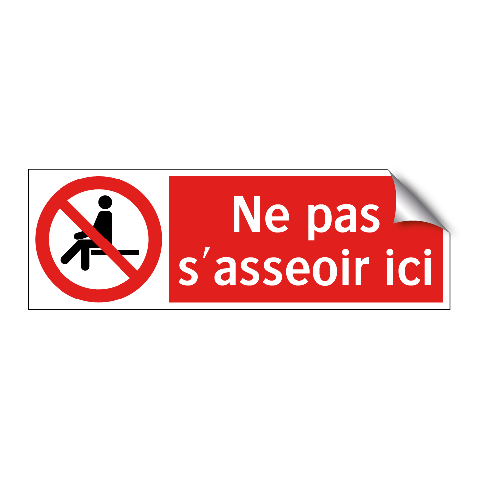 Panneau d'interdiction avec le texte : "Ne pas s'asseoir ici" et une symbolique claire.
