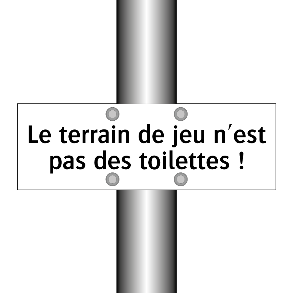 Panneau d'interdiction avec le texte : "Le terrain de jeu n'est pas des toilettes !"